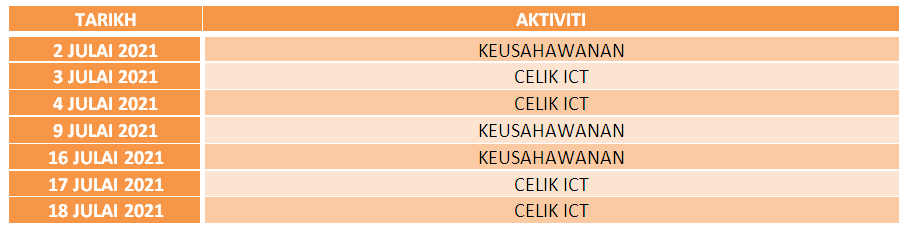 Jadual Aktiviti Bulan Julai 2021