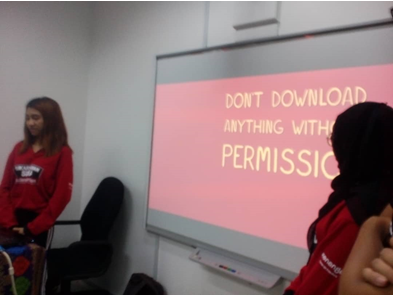 Aktiviti yang diadakan adalah Taklimat Infografik, sesi melekat infografik di setiap meja komputer Pusat Internet Beladin dan tayangan video Clik the Right ICT ASEAN.